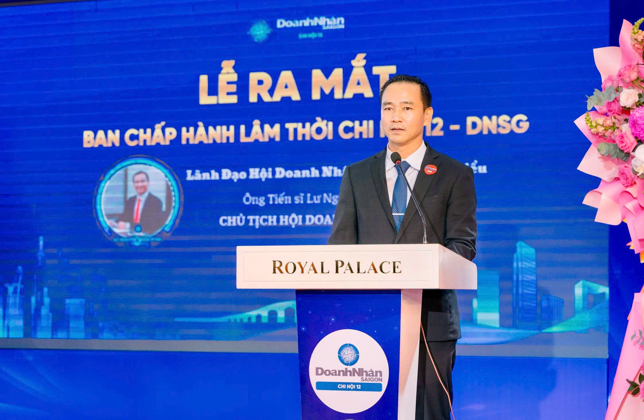Phát biểu tại buổi Lễ, Tiến sĩ Lư Nguyễn Xuân Vũ – Chủ tịch Hội Doanh nhân Sài Gòn gửi lời chúc mừng đến tập thể Chi hội 12 và Ban Chấp hành nhân sự kiện ra mắt, đồng thời tri ân đến các doanh nhân của Chi hội đã đồng hành cùng Hội Doanh nhân Sài Gòn trong thời gian qua để góp phần xây dựng Hội và phát triển kinh tế, xã hội địa phương. Đồng chí nhấn mạnh việc ra mắt Chi hội 12 là bước tiến quan trọng, tạo môi trường kết nối, hỗ trợ lẫn nhau và là cầu nối giữa doanh nhân với chính quyền địa phương các cấp.