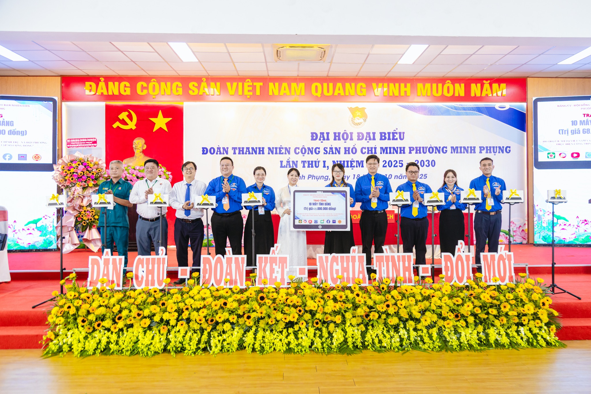 Nhân dịp Đại hội Đại biểu Đoàn Thanh niên cộng sản Hồ Chí Minh phường Minh Phụng lần thứ I, nhiệm kỳ 2025 – 2030, Ban Thường vụ Đảng ủy phường trao tặng Đại hội 10 máy tính bảng, trị giá 68.000.000 đồng, hỗ trợ thực hiện công trình “Trạm học tập số cộng đồng” nhằm tiếp sức, động viên đến tuổi trẻ phường Minh Phụng hãy tiếp tục lan tỏa sáng tạo, hội tụ tri thức và thể hiện bản lĩnh của cán bộ Đoàn, đoàn viên, thanh niên phường nhà góp phần xây dựng phường Minh Phụng văn minh, hiện đại cùng Thành phố bước vào kỷ nguyên mới.