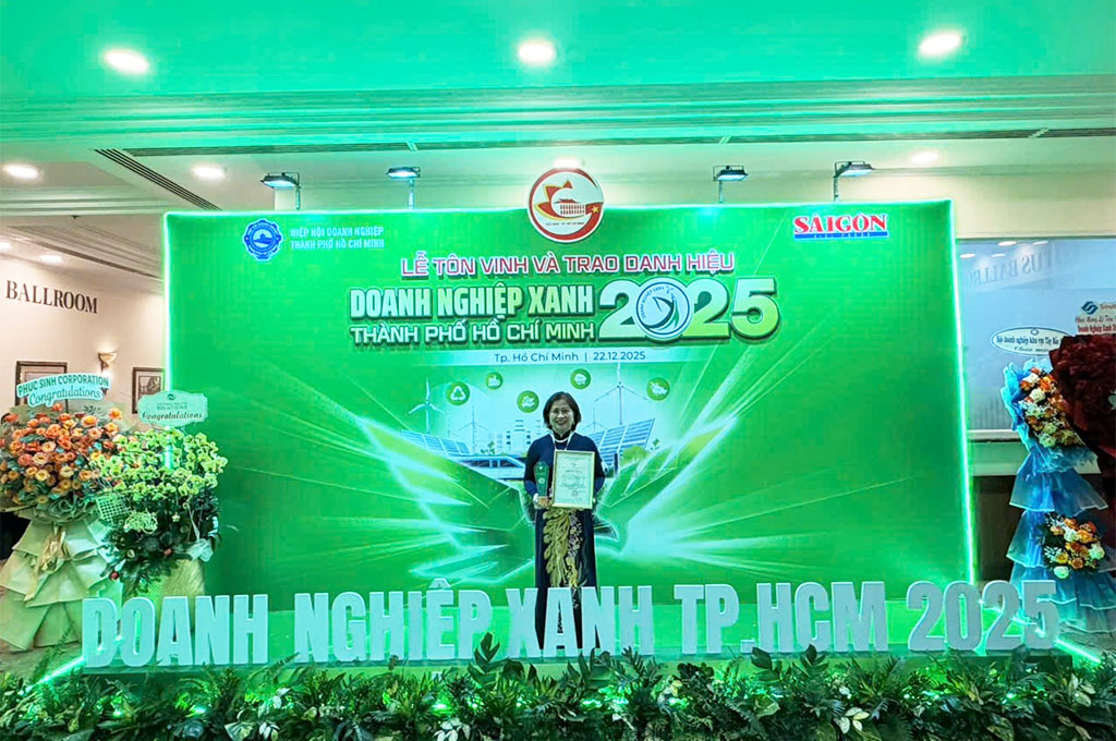 Ngày 22/12/2025, tại TP. Hồ Chí Minh đã diễn ra Lễ tôn vinh và trao danh hiệu Doanh nghiệp xanh TP. Hồ Chí Minh năm 2025 cho 155 doanh nghiệp tiêu biểu. Trong đó có 77 doanh nghiệp hoạt động trong lĩnh vực sản xuất và 78 doanh nghiệp thuộc lĩnh vực thương mại – dịch vụ – bất động sản.