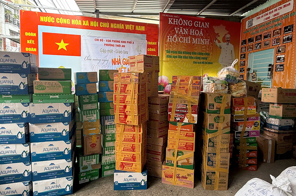 Các chi hội đoàn thể từ sáng đến tối đều tất bật sắp xếp, phân loại, đóng gói từng phần quà với tất cả sự tận tâm. Những bàn tay gấp áo, xếp mì, chất thùng hàng chính là biểu tượng của tinh thần “sẻ chia trong lúc gian khó” – một nét đẹp nhân văn của cộng đồng nơi đây.
