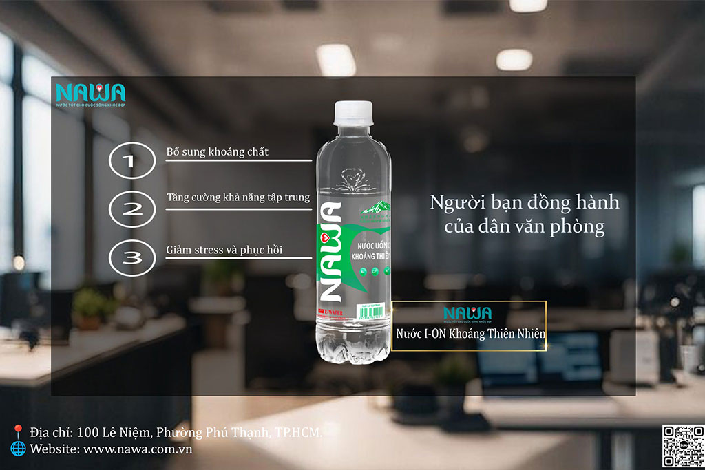 NAWA không chỉ là sản phẩm nước uống, mà còn được xem như giải pháp chăm sóc sức khỏe toàn diện. Với thông điệp “Năng lượng xanh cho sức khỏe & tinh thần”, NAWA đang nhanh chóng trở thành thương hiệu đồng hành của cộng đồng văn phòng tại TP.HCM và nhiều đô thị lớn.