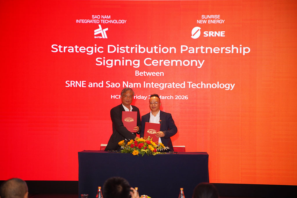 Ngày 20/3/2026, tại Thành phố Hồ Chí Minh, Công ty Cổ phần Công Nghệ Tích Hợp Sao Nam (Sao Nam) chính thức công bố việc mở rộng danh mục công nghệ năng lượng mặt trời thông qua ký kết hợp tác chiến lược với SRNE – thương hiệu sản xuất biến tần và hệ thống lưu trữ năng lượng uy tín trên thị trường quốc tế.