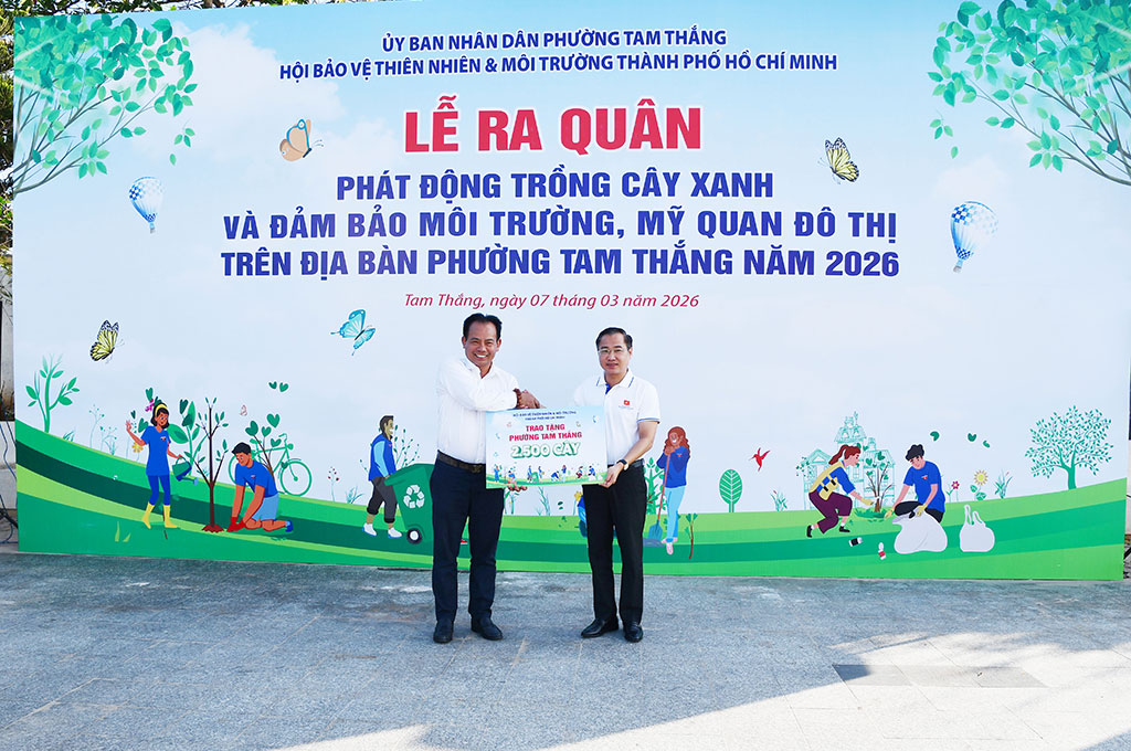 Sáng 7/3/2026, UBND phường Tam Thắng phối hợp cùng Hội Bảo vệ Thiên nhiên và Môi trường TP.HCM (HANE) tổ chức “Lễ ra quân phát động trồng cây xanh và đảm bảo môi trường, mỹ quan đô thị trên địa bàn phường Tam Thắng năm 2026”, hướng tới chào mừng Bầu cử Đại biểu Quốc hội khóa XVI và Đại biểu HĐND các cấp nhiệm kỳ 2026 – 2031. Hoạt động góp phần xây dựng không gian sống xanh, sạch, đẹp, đồng thời nâng cao ý thức cộng đồng trong việc bảo vệ môi trường và ứng phó với biến đổi khí hậu.