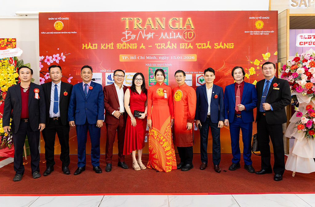Ngày 15/01/2026, tại Trung tâm Hội nghị The Adora Center, TP.HCM, Câu lạc bộ Doanh nhân Họ Trần phối hợp cùng Ban Vận động Hội Đoàn Kết Họ Trần Việt Nam long trọng tổ chức chương trình nghệ thuật – giao thương “Trần Gia By Night – Mùa 10” với chủ đề “Hào khí Đông A – Trần Gia Tỏa Sáng”. Sự kiện đã để lại dấu ấn sâu sắc trong lòng cộng đồng doanh nhân và bà con họ Trần trên cả nước.